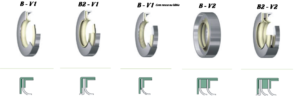 Retentores Radiais de PTFE estão disponíveis em vários modelos. O diâmetro externo de metal pode ser de alumínio, aço carbono ou aço inoxidável. Para o lábio de vedação são usados diversos compostos de PTFE, incluindo materiais, que atendem as normativas da FDA (Administração de Alimentos e Medicamentos dos EUA). As dimensões dos Retentores Radiais de PTFE são normalizadas de acordo as normas ISO 6194/1:1982 e DIN 3760-1996, o que permite perfeitamente substituir os Retentores Radiais tradicionais.